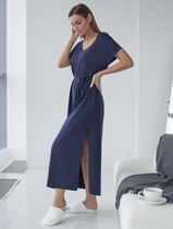 Платье свободное с V-вырезом из 100% хлопка с поясом и разрезом