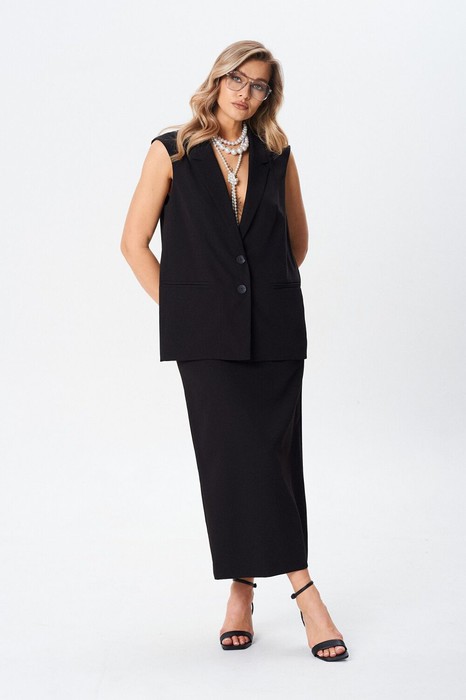Женский комплект двух предметный, состоящий из жилета и юбки.