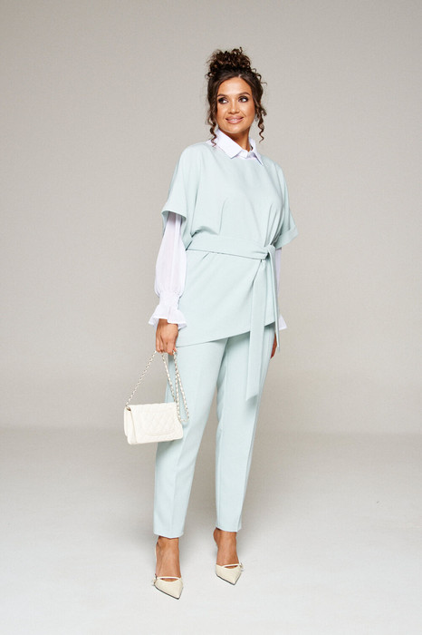 Деловой комплект 3-ка, состоящий из трех элементов: блузки, брюк и жилета.