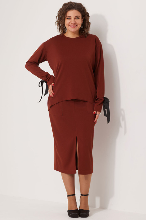 Невероятно уютный, универсальный трикотажный комплект, состоящий из свитшота и юбки - это решение для каждой модницы, ценящей современные, лаконичные образы. Такой комплект идеален для офиса, а так же в нём можно провести приятный вечер в любимом кафе с друзьями либо надеть в театр. Сочетание практичности и элегантности позволяет всегда быть на высоте, не жертвуя при этом комфортом. Фасон комплекта позволяет грамотно прорисовывать нужные линии и скрывать недостатки фигуры.