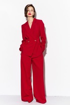 Комплект женский-двойка, из текстильной ткани, жакет удлиненный, полуприлегающего силуэта с центральной бортовой застежкой на пуговицы до линии перегиба лацкана. Спереди рельефные швы от плечевого шва, отрезной бочок и карман с клапаном. Спинка с рельефами от плечевого шва. Рукав втачной, двухшовный. Воротник пиджачного типа. Жакет на подкладке, длина по спинке 67 см, длина рукава 62 см.Юбка прямого силуэта, с небольшой кокеткой в верхней части, которая обработана обтачкой, спереди обработан разрез-шлица. Заднее полотнище со средним швом и талиевыми вытачками, застегивается на потайную молнию. Длина по боковому шву 74 см. Юбка на подкладке.