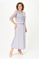 Костюм женский полуприлегающго силуэта, состоит из рубашки и брюк. Выполнен из хлопковой ткани. Рубашка с центрально-бортовой застежкой на петли и пуговицы, воротник на стойке, рукав 3/4 с притачным манжетом, в боковых швах обработаны разрезы и есть накладной карман на полочке. Брюки с высокой посадкой, пояс на резинке, в боковых швах обработаны карманы.