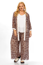 Костюм женский 3 предмнтный. Кардиган с втачным рукавом и разрезами по боковым швам , перед и рукава обработаны довязами. Брюки с резинкой по талии и карманами в боковых швах. Блузка двойная без рукава