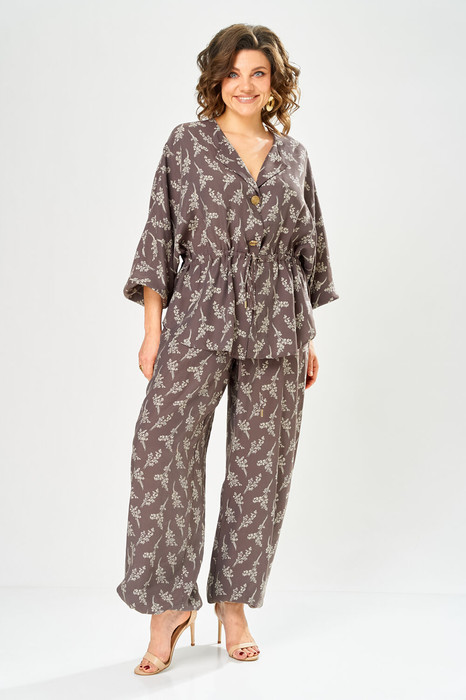 Элегантный женский костюм, выполнен из легкой комфортной ткани. Состоит из блузы и брюк.