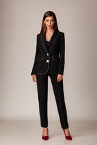 Брюки, зауженные к низу, по верху на задних половинках отрезные кокетки, по боковым швам от кокетки до низа отделочные лампасы, на уровне бедер в швах функциональные карманы. Верх брюк оформлен отрезным поясом с резинкой.
