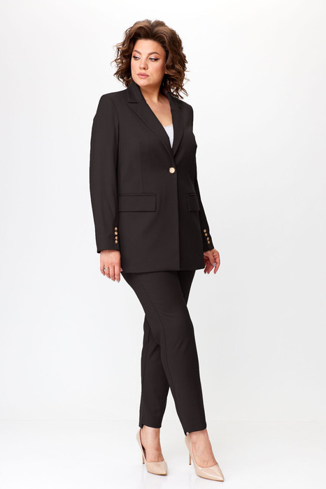Элегантный женский костюм выполнен в классическом стиле, состоит из жакета и брюк.