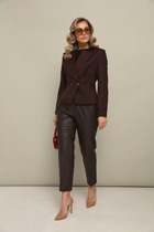 Элегантный женский костюм выполнен в классическом стиле, состоит из жакета и брюк.