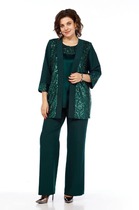 Комплект Бруно. Состоящий из жакета и брюк из поливискозной ткани. Жакет идеально дополнит повседневный и нарядный образ, полуприлегающего силуэта. Пиджачный- отложной воротник формирует красивую линию декольте, на нем расположена авторская вышивка " линиарные хрустальные цветы" . Застёжка на пуговицы, по переду расположены боковые карманы с клапанами. Рукав длинный. Брюки классические прямого силуэта, пояс на резинке , имеются боковые карманы, застёжка на молнию. Можно надеть в сочетание с блузкой, топом. Длина жакета - 75 см. Длина брюк с поясом - 101 см.