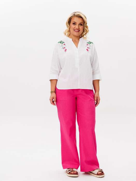 Комплект из мягкой хлопковой  блузки и льняных брюк- это стильный и удобный образ.