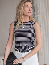 Костюм женский двухпредметный выполнен из костюмно-плательной ткани в полоску. Жакет ассиметричного кроя, прямого силуэта, вырез горловины оформлен воротником пиджачного типа, жакет имеет двубортную застежку на петли пуговицы. По переду, с одной стороны, обработан прорезной карман в рамку с клапаном. Рукава - втачные двухшовные с плечевыми накладками. Брюки - прямые. Пояс - отрезной с застежкой на молнию и петлю с пуговицей и частично на резинке. Имеются карманы с отрезными бочками и шлевки для ремня. Низ брюк обработан закрытым швом.
