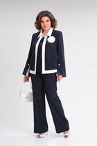 Комплект брючный. Кофта прямого силуэта, линия плеча спущена,рукав втачной одношовный. Горловина обработана бейкой. По низу изделия и рукава манжеты. Центральная часть переда с отделочной деталью( с вышивкой). Брюки прямые, в боковых швах обработаны карманы, верхний срез обработан поясом с резинкой и шнурком. Жилетка женская утепленная с центральной застежкой на "молнию". Спинка со стяжкой. Перед с отрезными бочками и боковыми карманами "с листочкой". Воротник стойка с кулисой и шнуром из декорированной тесьмы. Низ жилетки округлой формы спереди короче, а спинка длиннее . Правый карман украшен нашивкой.