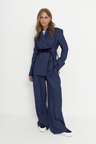 Комплект женский состоит из рубашки и платья. Платье длинное, свободного кроя. Спинка со среднем швом, разрезом, талиевыми вытачками, 2-мя складками по низу. Перед с нагрудными вытачками и складками по низу. Карманы обработаны в боковых швах. Низ платья по бокам собран на резинку. Рубашка совбодного кроя с центральной застежкой на 5 петель и пуговиц. Спинка с округлым подрезом и отделкой в ивде надписи. Перед по низу фиксируется кулисой и завязками. Воротник на стойке с обработанной горловиной . Рукав втачной, одношовный со спущенной линией плеча. По низу рукава манжет с застежкой.