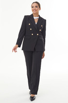 Комплект брючный состоит из кофты и брюк. Кофта свободного кроя покроя реглан. По низу рукава манжет. Капюшон с центральным швом. По боковым швам разрезы. В качестве отделки используется кружево по рукаву и капюшону. Брюки широкие, в боковых швах обработаны карманы. Верхний срез обработан поясом с резинкой.