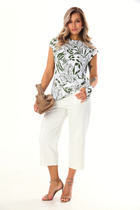 Комплект женский состоит из юбки и рубашки. Рубашка свободного кроя с центральной застежкой на петли-пуговицы. Спущенное плечо, втачной одношовный рукав (фиксируется отворот на петлю и пуговицу) по переду прорезные карманы с листочкой. Воротник-стойка. Юбка длинная, верхний срез обработан поясом на резинке с застежкой на петлю и пуговицу в левом боковом шве с потайной тесьмой-молнией. Юбка кроенная по косой. На заднем полотнище талиевые вытачки.