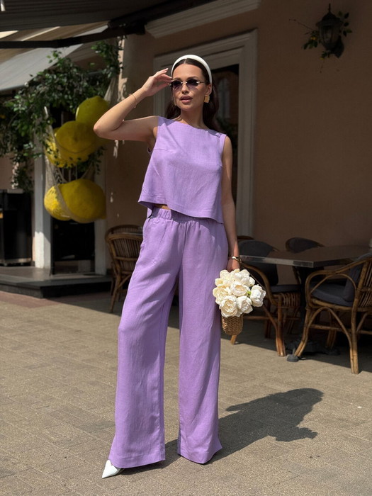 Костюм женский двух-предметный, состоящий из брюк и блузы.
