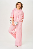 Летний брючный костюм из легкого вельвета , безупречный фасон в сочетание с нежным цветом сделает ваш образ идеально модным как в ежедневной носке так и  для особого случая . Жакет свободного прямого , кроя с накладными карманами , на застежке петли пуговицы, по низу эластичная лента , рукав  укороченный , резной с отстрочками . Брюки прямого силуэта, с накладными карманами, средней посадки , без застежки  на поясе с резинкой.Возможна замена фурнитуры.