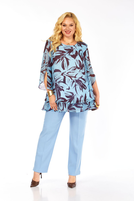 Костюм Элль стиль 2213/12 голубой/кофе