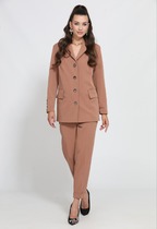 Костюм женский двойка выполнен из трикотажной эластичной ткани. Джемпер ассиметричный полуприлегающего кроя.. Горловина округлая, рукав втачной, на полочке расположен прорезной карман. Брюки классического кроя средней посадки, в боковых швах имеются функциональные карманы. Изделие на притачном поясе с резинкой застёжка-молния.