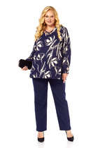 Брюки свободные с вертикальными защипами стрелками на передних половинках-визуально удлиняют и стройнят. предусмотрены боковые карманы. Пояс брюк с эластичной лентой и регулировкой на шнур спереди.