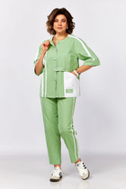 Костюм с жилетом - прекрасное решение для смелых экспериментов. Жилет полуприлегающего силуэта с асимметричной застёжкой, фигурной линией низа и регулирующийся кулисе по спинке. Полочки с отрезным бочком и нагрудными вытачками, спинки - с центральным швом, отрезным бочком и регулирующийся кулисой с фиксаторами. Брюки "баррел" на притачном поясе со шлёвками (эластичном в области спинки), с наклонными карманами , мягкими складками защипами по верху брюк и вытачками по низу. Джемпер трикотажный, с длинным рукавом, полуприлегающего силуэта.