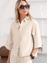 Комплект двойка "Медея". Туника женская, прямого силуэта. Выполнена из хлопковой ткани. Рукав втачной, длинный, по низу притачная манжета с застежкой на пуговицы. Длина рукава регулируется патой. Фигурный вырез горловины, оформленный отрезными планками. Застежка на пуговицах. Воротник стойка. По переду выполнены фигурные карманы с небольшой сборкой по верхнему краю. По линии талии подрез с небольшой сборкой. На спине изделия прямая кокетка, посередине бактовая складка. Низ изделия фигурный, по боковым швам выполнены разрезы. Джинсы - брюки, зауженные к низу, с застежкой на молнию и пуговицы, в боковом шве - карман, по спинке пояса - резинка. Брюки со стандартной посадкой (средней).