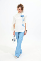 Майка-топ — это дыхание комплекта, его мягкость и свет. Атласная ткань струится по телу, прямой силуэт создаёт ощущение лёгкости, а нагрудная вытачка — точность посадки. Втачные одношовные рукава и разрезы в боковых швах — это свобода движения, а обработка низа и рукавов швом в подгибку с закрытым срезом — завершённость и чистота линий.