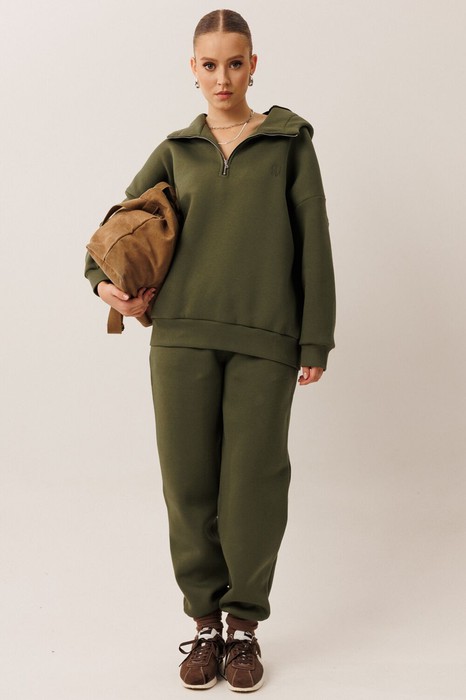 " Этот спортивный костюм от GOwear отлично подойдет для дома, прогулок, путешествий и отдыха. Сделан из теплой, комфортной ткани. Состоит из джемпера и брюк. Джемпер имеет двойной капюшон и короткую застежку - молнию черного контрастного цвета по центру переда. На переде с левой стороны выполнена вышивка в цвет ткани. Джемпер имеет прямой силуэт. Низ джемпера и манжеты выполнены из кашкорсе. Брюки зауженные к низу с притачным поясом (резинка и шнурок внутри). Брюки с боковыми карманами. По низу брюк – манжеты.
