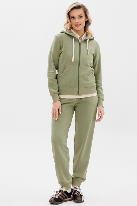 Классический женский спортивный костюм состоит из худи на застёжке-молнии и брюк на манжетах. Всесезонная ткань сделает его любимым в Вашем гардеробе как для дома, так и улицы.