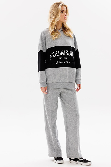 Стильный костюм с с оверсайз худи с контрастной вставкой и вышивкой Athleisure станет любимым в гардеробе. Athleisure - расслабленный и непринужденный стиль, основанный по большей части на спортивных базовых вещах. По сути, это даже не стиль, а способ носить базовые спортивные вещи.