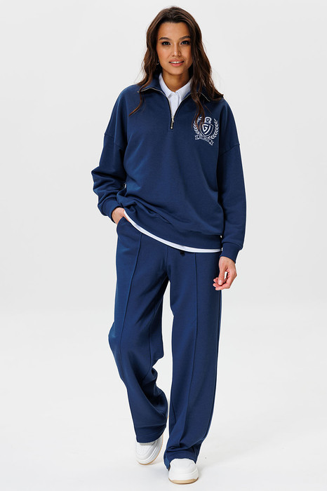 Женский яркий, повседневный костюм, состоящий из оверсайз свитшота с контрастной вышивкой и брюк со стрелками. Это находка для тех, кто ценит свободу, стиль и не хочет отказывать себе в комфорте 24/7.