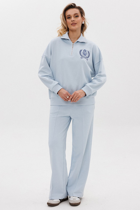 Женский яркий, повседневный костюм, состоящий из оверсайз свитшота с контрастной вышивкой и брюк со стрелками. Это находка для тех, кто ценит свободу, стиль и не хочет отказывать себе в комфорте 24/7.