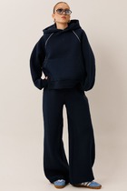 Блузка с втачным воротником с отрезной стойкой, центральной застежкой петли и пуговицы. По левой полочке на уровне груди расположен накладной карман. Спинка с отрезной кокеткой. Рукав втачной, длинный, с отрезной манжетой. Шорты прямые, с отрезным поясом, пояс присборен на резинку. В боковых швах расположены карманы. Вход в карман наклонный к боковому шву.