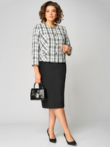 Блузон с высоким отрезным воротником- хомут. По переду с отрезной V- образной кокеткой. Спинка цельная. По низу блузона- кулиса со шнуром. Рукав втачной, длинный Плечо- спущенное. Брюки прямые, с отрезным поясом. Пояс присборен на резинку. В боковых швах расположены карманы.