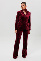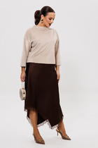 Жилет с центральной застежкой на петли и пуговицы, без вортника, с круглым вырезом горловины. По переду с рельефами, выходящими из проймы до низа, на уровне линии бедер расположены прорезные карманы с листочками и клапанами. По спинке со средним швом и рельефами, выходящими из проймы до низа. Юбка без пояса, верхний срез обработан обтачками. Заднее полотнище со средним швом, застежкой на потайную молнию в среднем шве.