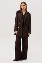 Жилет свободного силуэта из тонкой стежки на подкладке. Изделие двубортное на завязке, по полочке накладной карман с клапаном.
