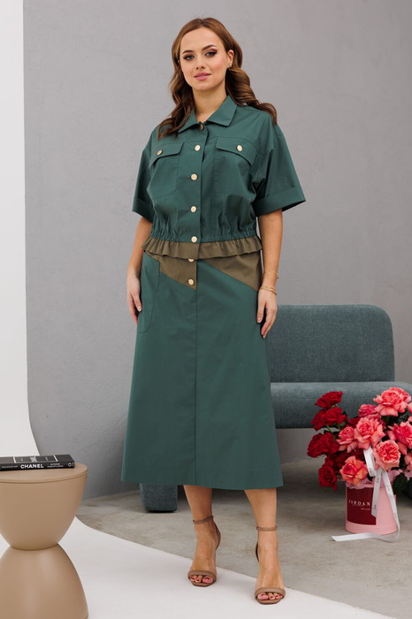 Блузка свободного силуэта, воротник рубашечный, рукав спущенный, короткий на манжете. По переду кокетка и накладные карманы с клапаном. Застежка на петли и пуговицы. Внизу изделие на резинке.