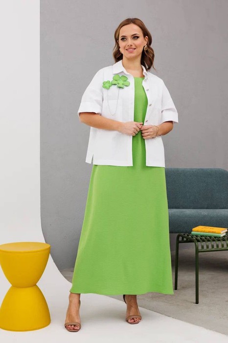 Состав: Жакет- ПЭ-26%; Хлопок-72%; Эластан-2%; Платье- Вискоза-23%; ПЭ-71%; Спандекс-6%;