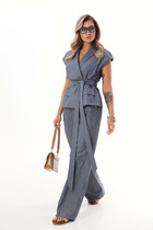 Брюки палаццо, по талии на резинке, в боковых швах карманы и лампасы из отделочной ткани. Брюки без застежки.
