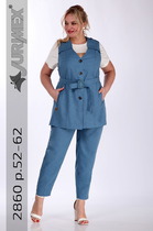 Костюм женский с брюками и блузой свободного силуэта выполнен из легкой струящейся ткани. Блуза с круглым вырезом горловины, рукава со спущенной линией плеча, низ блузы и манжета дополнены планками той же ткани белого цвета. Брюки прямые свобного кроя на притачном поясе-резинке с функциональными карманами в боковых швах. Костюм прошел тестовую стирку при температуре 30 градусов (не линяет). Костюм соответствует размеру. Пожалуйста, пользуйтесь таблицей измерений готового изделия.