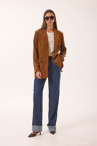 Костюм женский, состоящий из туники и брюк, выполнен из легкой струщейся ткани. Туника свободного силуэта со втачными рукавами; линия горловины с V-образным вырезом и контрастным довязом. Брюки классические, прямого кроя, в боковых швах функциональные карманы, пояс притачной полностью на резинке. Костюм полностью соответсвтует заявленному размеру. Пользуйтесь таблицей замеров готового изделия.