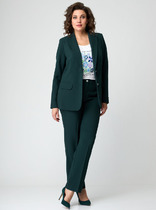 Комплект брючный 2-х предметный изготовлен из трикотажного полотна. Джемпер свободного силуэта, горловина обработана воротником – стойка. Низ переда с широкой планкой, декорированной печатью. Спинка цельнокроенная. В боковых швах обработаны карманы. Рукав спущенный, длинный. Брюки средней посадки, пояс на резинке дополнен шнуром. Брюки прямого покроя.