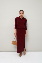 Комплект женский повседневный, состоит из жилета и платья. Жилет прямого силуэта выполнена из эко-кожи на вискозной основе. Перед разрезной по центру и по линии талии, в верхней части обработаны рельефы. В нижней части переда асимметричный накладной карман с клапаном. Спинка разрезная по центру, на кокетке. Все швы жилета отстрочены отделочными нитками. Платье выполнено из трикотажного полотна, прямого силуэта с воротником и подрезными планками. В боковых швах обработаны разрезы внизу. Рукава втачные. По низу рукава — декоративная нашивка.