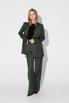 Комплект женский, брючный 3х — предметный , состоит из: топа, накидки и брюк. Накидка выполнена из органзы с флокам, отделкой служат планки, манжеты и пояс из велюра. Накидка свободного кроя с цельнокроеным рукавом, длиной 3/4 . Брюки изготовлены из велюра, прямые. Пояс брюк на резинке, обработаны боковые карманы. Топ из трикотажного полотна с блеском, форма горловины — каре.