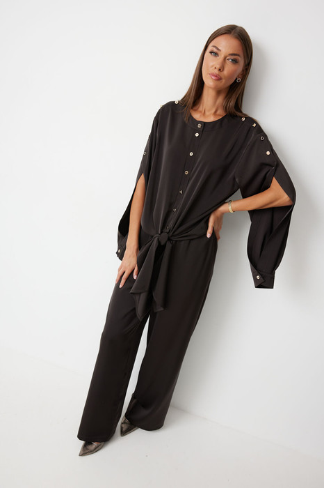 Длина блузы по спинке 48 р. - 58 см, 54 р. - 61 см, Длина брюк по боковому шву 111 см.