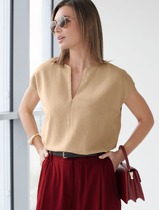 Свободный топ с V-вырезом и цельнокроеным коротким рукавом изо льна с вискозой