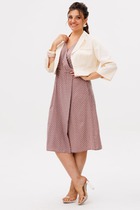 Блузон свободного силуэта выполнен из ткани с контрастным принтом «горох». Модель с втачным рукавом длиной 3/4. Передняя часть оформлена завязками, которые позволяют регулировать посадку и подчеркивать линию талии. Легкая струящаяся ткань придает изделию изящность и комфорт при носке.