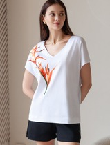 Свободная футболка с V-вырезом и цельнокроеным рукавом из 100% хлопка с принтом