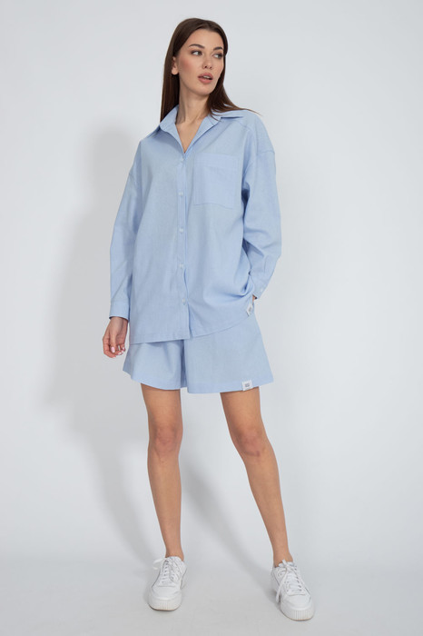 Костюм состоящий из шорт льняных свободного кроя с карманами в боковых швах и рубашки льняной свободного кроя со спущенными рукавами и накладным карманом. Прекрасно сочетается с брюками модели 4076, джемпером модели 4075, рубашкой 4081, джоггерами 4082. Ткань лен с вискозой.