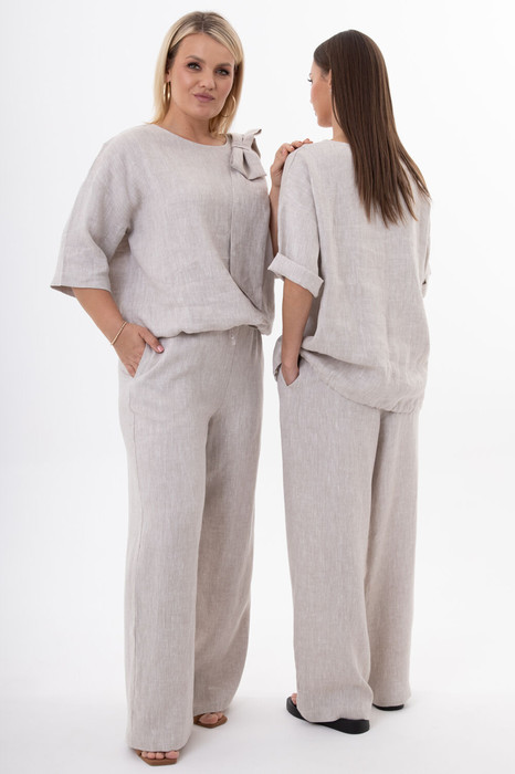 Женский костюм из льна с вискозой | Белорусский комплект: джемпер с бантом и брюки