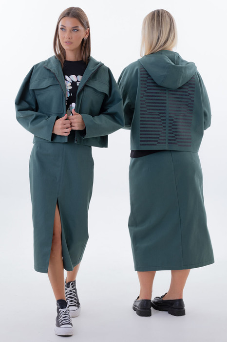 Kivvi Wear представляет идеальный дуэт, где уличный шик встречается с безупречной элегантностью. Джинсовый костюм — это гармоничный ансамбль из укороченной ветровки и юбки-карандаш, созданный для тех, кто ценит смелые контрасты и многослойность.